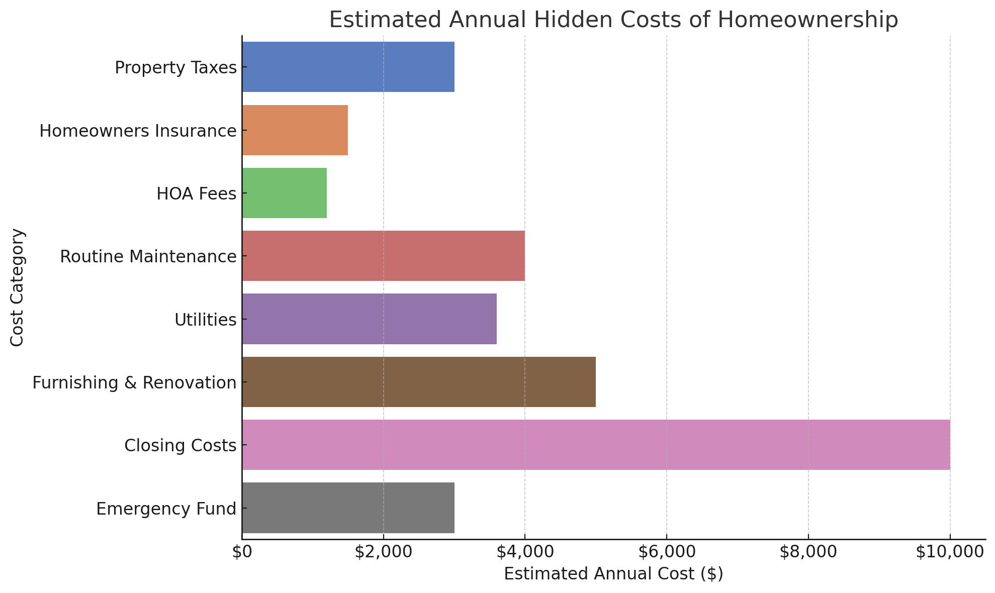 This chart outlines the typical hidden costs homeowners encounter annually. Actual expenses may vary by location, home size, and lifestyle, but planning within these ranges creates a realistic financial roadmap.